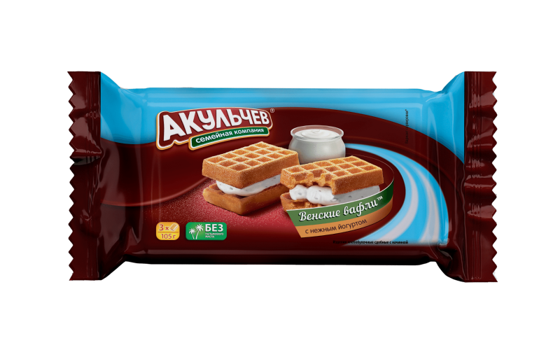 Венские вафли от «Акульчев» — сдобные сэндвичи с ароматом домашней выпечки и разнообразными начинками, завоевавшие достойное место среди кондитерских изделий на полках в магазинах. Этот вкусный и сытный десерт вот уже 20 лет радует сладкоежек всех возрастов не только в России, но и во всем мире. Мы были первой компанией, которая разработала уникальную рецептуру мягких вафель в нашей стране. На ваш выбор — широкая линейка начинок: сладкие фруктово-ягодные с тонкой кислинкой, нежные йогуртовые, густые сливочные. Каждый член вашей семьи найдет среди наших венских вафель свой любимый вкус!