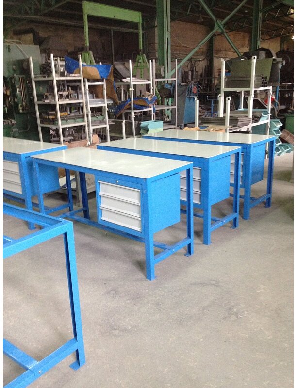 Верстак без навесного оборудования. Cтолешница - фанера толщиной 18 мм + оцинкованный стальной лист толщиной 1,5 мм Верстак предназначен для оснащения рабочих зон в автосервисах, гаражах, мастерских, производственных цехах.
