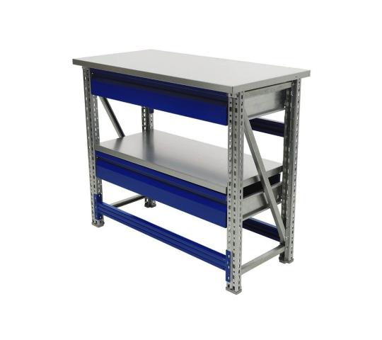 Верстак ученический CLASSIC SF283C от компании "СТАНИСФЕРРУМ", г. Москва. Основные элементы верстака (опоры, полка, подпятники, накладка на столешницу) изготовлены из оцинкованной стали, что позволяет устанавливать его в местах с повышенной влажностью. Столешница выполнена из многослойной фанеры 24 мм, покрытой оцинкованным листом металла, толщиной 1.2 мм Распределенная нагрузка 300кг. Опоры изготовлены из оцинкованного металлического профиля 55х30 мм. шаг перфорации 50 мм. Возможность дополнить верстак полкой (нагрузка 100 кг) и выдвижным ящиком (нагрузка 30 кг). Телескопические направляющие выдвижных ящиков, обеспечивают свободный и плавный ход даже при полной загрузке. Компактные габариты 1000х500 мм позволяют разместить верстак в местах с ограниченной площадью. Возможность хранения под столешницей верстака до 4-х колес R15 195/65 R16 205/55/. За счет единой опоры верстаки можно устанавливать в линии и секции. Поставляются в разобранном виде. Верстак можно приобрести как в комплекте (в единой таре), так и собрать из комплектующих. Комплект: Опора -1 – 2 шт. Балка м 90 – 3 шт. Столешница МT-100 – 1 шт. Ящик верстачный40 -2 шт. Полка верстачная м-100 – 1 шт. Доставка по всей России осуществляется транспортными компаниями. Источник: https://productcenter.ru