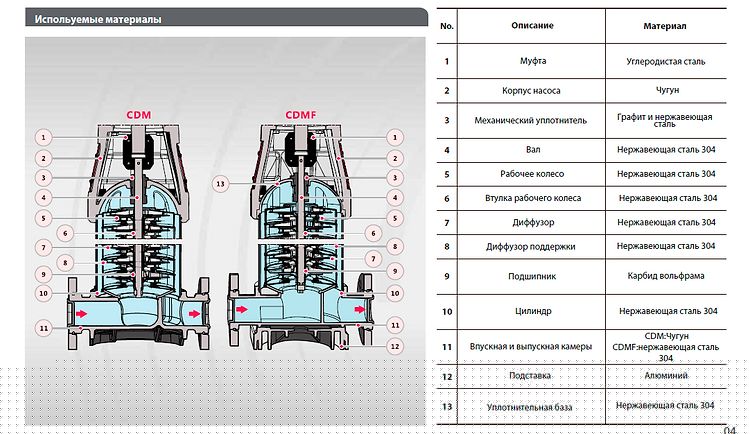 Насосы серии CDM - вертикальные, многоступенчатые, центробежные, повысительные, оснащены двигателем YE3. Входной и выходной патрубки находятся на одной оси. Насосы могут изготавливаться из стали AISI 304, AISI 316 и чугуна.Многоступенчатые насосы серии CDM из нержавеющей стали подходят для промышленных технологических систем, систем промывки, перекачки кислот и щелочей, систем фильтрации, повышения давления воды, очистки воды, ирригации, систем противопожарной защиты и т.п.