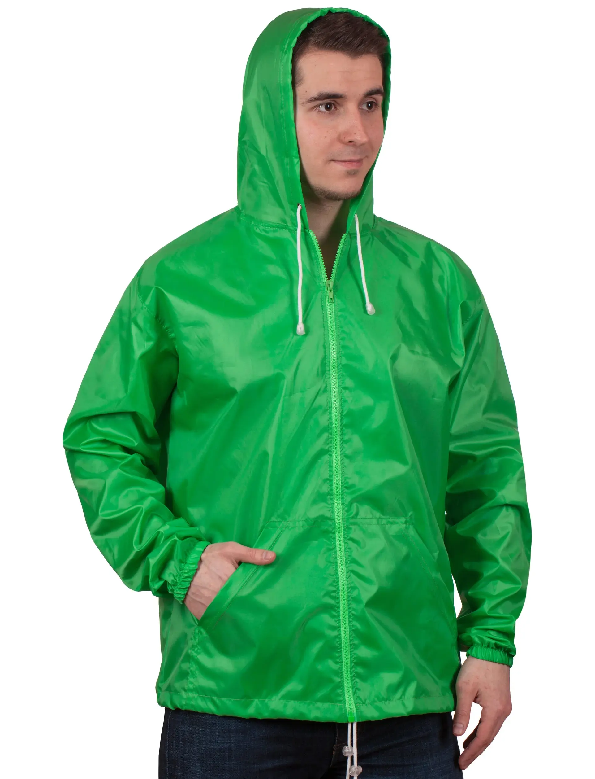 Ветровка с капюшоном без подкладки зеленый выполнена в простом и функциональном дизайне, с капюшоном на регулируемых затяжках, что позволяет защитить голову от непогоды. Модель имеет классический крой с рукавами реглан для большей свободы движений. Ветровка оснащена застежкой-молнией, двумя вместительными карманами для хранения мелочей и регулируемым капюшоном, который защищает от дождя и ветра.