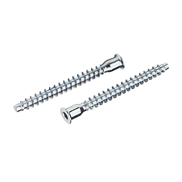 Конфирмат, известный как винт мебельный или евровинт, вкручивается при помощи шестигранника в заранее просверленное отверстие, не требует использования шайб. Маскируется пластиковыми заглушками.