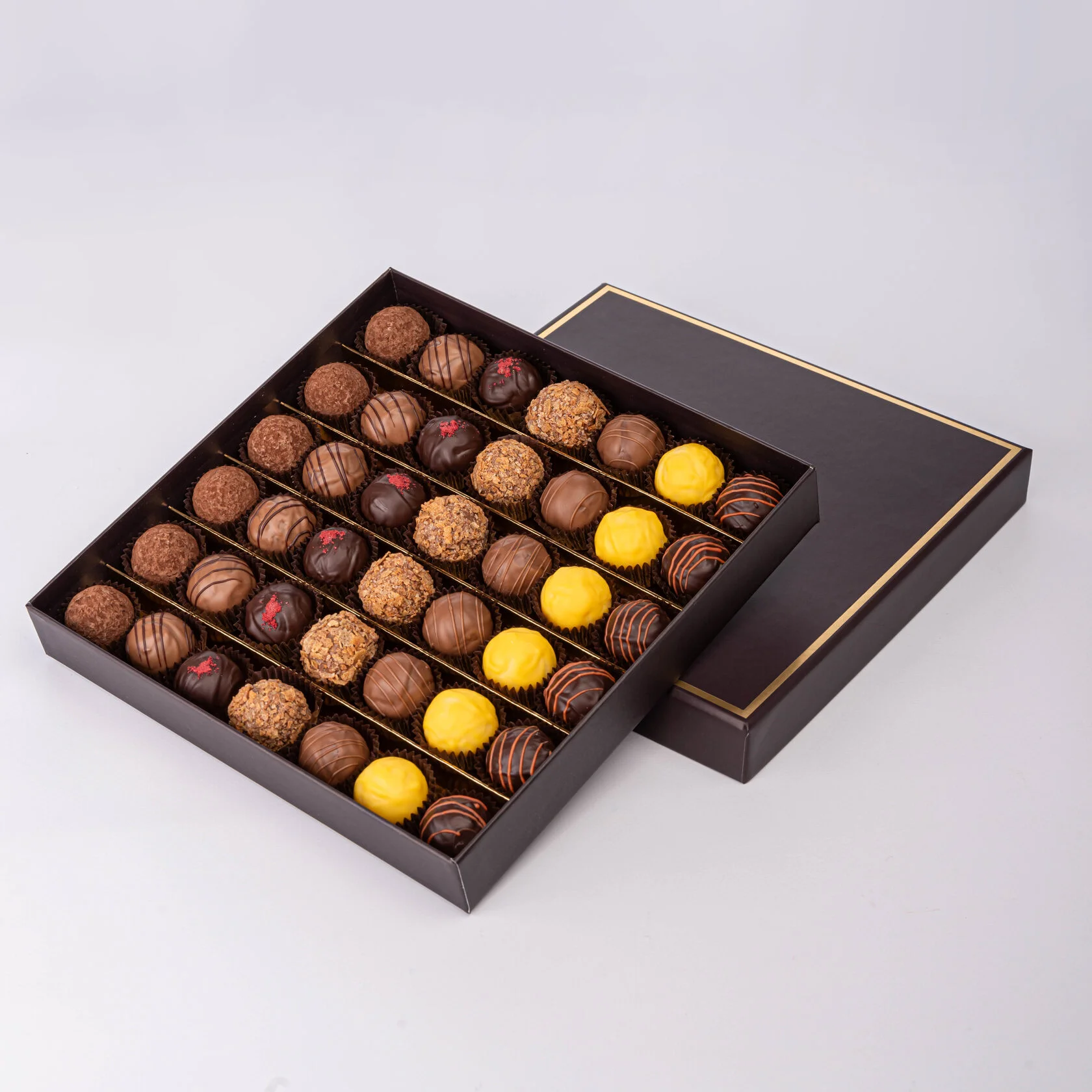 - «Классический сырный трюфель в какао» — узнаваемый вкус насыщенного темного шоколада, дополненный интересным акцентом в виде измельченного пармезана.