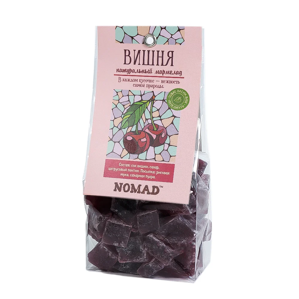 Каждый кусочек мармелада NOMAD™ - это совокупность натуральных ингредиентов и обязательно - тепло рук. Наше производство принципиально избегает ширпотреба с его неизбежными красителями, ароматизаторами, консервантами и влагоудерживающими добавками. Все необходимые составляющие мармелада мы получаем в процессе изготовления цукатов NOMAD™, а это лишь сок, сахар (глюкоза, фруктоза и сахароза), плюс немного цитрусового пектина. И много-много времени! На каждую партию мармелада требуется до 10 дней: варка, загустевание, сушка, формовка, досушка, выдержка и упаковка. Каждая партия мармелада, как и исходное сырьё, имеют свои вкусовые нюансы. Поэтому он никогда не надоедает.