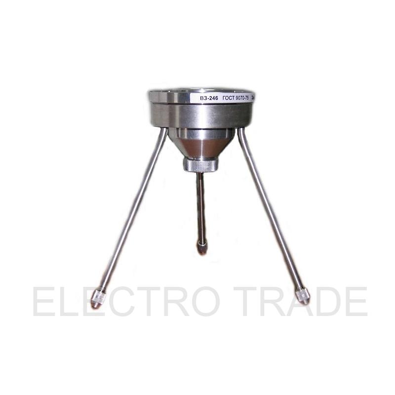 Вискозиметр ВЗ 246 на ножках - это прибор, определяющий условную вязкость (время истечения) лакокрасочных или подобных им продуктов (ньютоновских или приближающихся к ним жидкостей). Корпус Вискозиметра ВЗ-246 имеет форму воронки. В состав комплектации ВЗ-246 на штативе входят: резервуар, сменные сопла (2 мм, 4 мм, 6 мм) или комплект из трех сопел, поддерживающие ножки, градусник, уровень, руководство по эксплуатации, паспорт, упаковка. Диаметр прибора - 92 мм., высота - 62 мм.