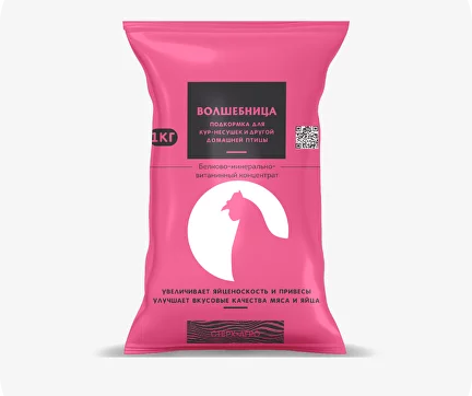 Белково-витаминно-минеральный концентрат для приготовления комбикормов в домашних условиях. Использование "Волшебницы" улучшает вкусовые качества мяса и яйца, позволяет увеличить привесы молодняка на 20-30%, добиться повышения яйценоскости кур-несушек и экономии корма на 20-25%, исключить расклевывание яиц.