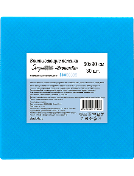 Впитывающие пеленки серия "ЭкономКа" созданы для тех случаев, когда от пеленок не требуется высокая впитываемость; Используются с подгузниками для дополнительной защиты постели. Нужны при проведении гигиенических процедур дома или в больнице. Пеленки являются универсальными и многофункциональными - используются для ухода за домашними животными, а также в уходе за пожилыми людьми и в хозяйственных целях. Формат - 60*90см. В упаковке 30 шт.