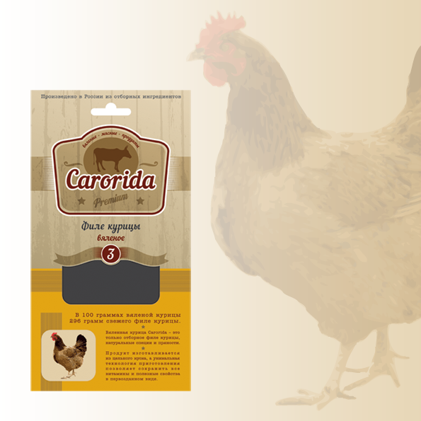 Вяленое куриное филе Carorida изготавливается из отборного мяса кур высшей категории с использованием натуральных специй и пряностей.