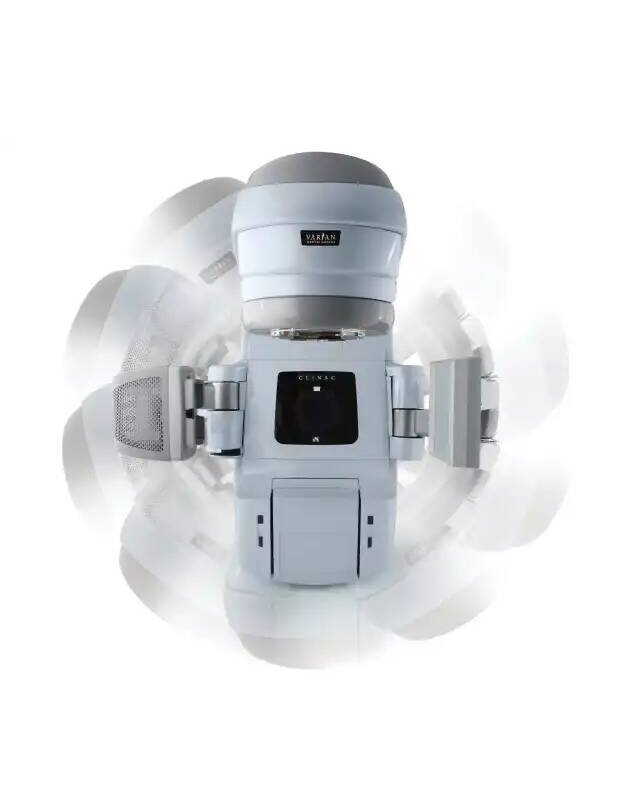 Высокоэнергетический аппарат Clinac iX - это высокоэнергетический аппарат для высокоточной лучевой терапии опухолей, метастаз и новообразований и радиохирургии. Позволяет реализовать разные методики, включая IMRT, IGRT, VMAT, SRS, использовать до 3-х энергий фотонов и до 5 энергий электронов, минимизирует облучение и повышает безопасность, а также сокращает длительность лечения - режим высокой мощности (2400 МЕ/мин) и интенсивности (10 МВ) дозы. Система оборудования выдает точную корректировку положения пациента по MV-изображениям.