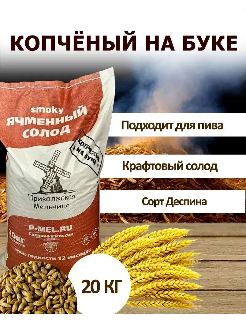 Копченый солод на буке - это уникальный и самобытный продукт, который придает пиву особый аромат и вкус. Этот солод изготавливается путем сушки ячменного солода над тлеющей щепой бука, создавая характерный дымный и слегка сладковатый профиль.