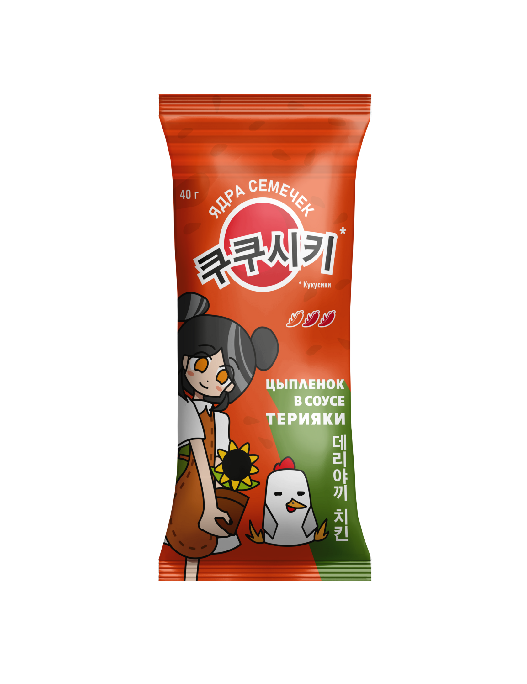 Состав: ядра семечек жареные, ароматизатор пищевой "Цыпленок терияки"