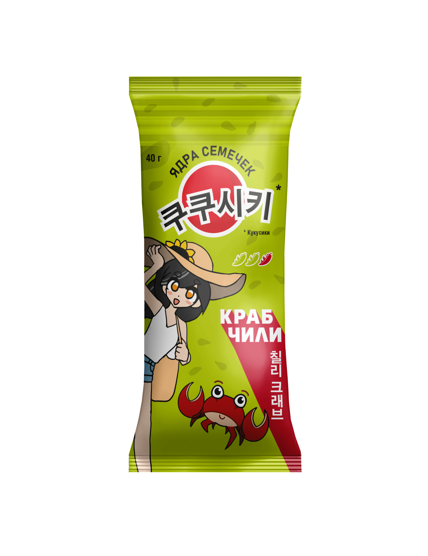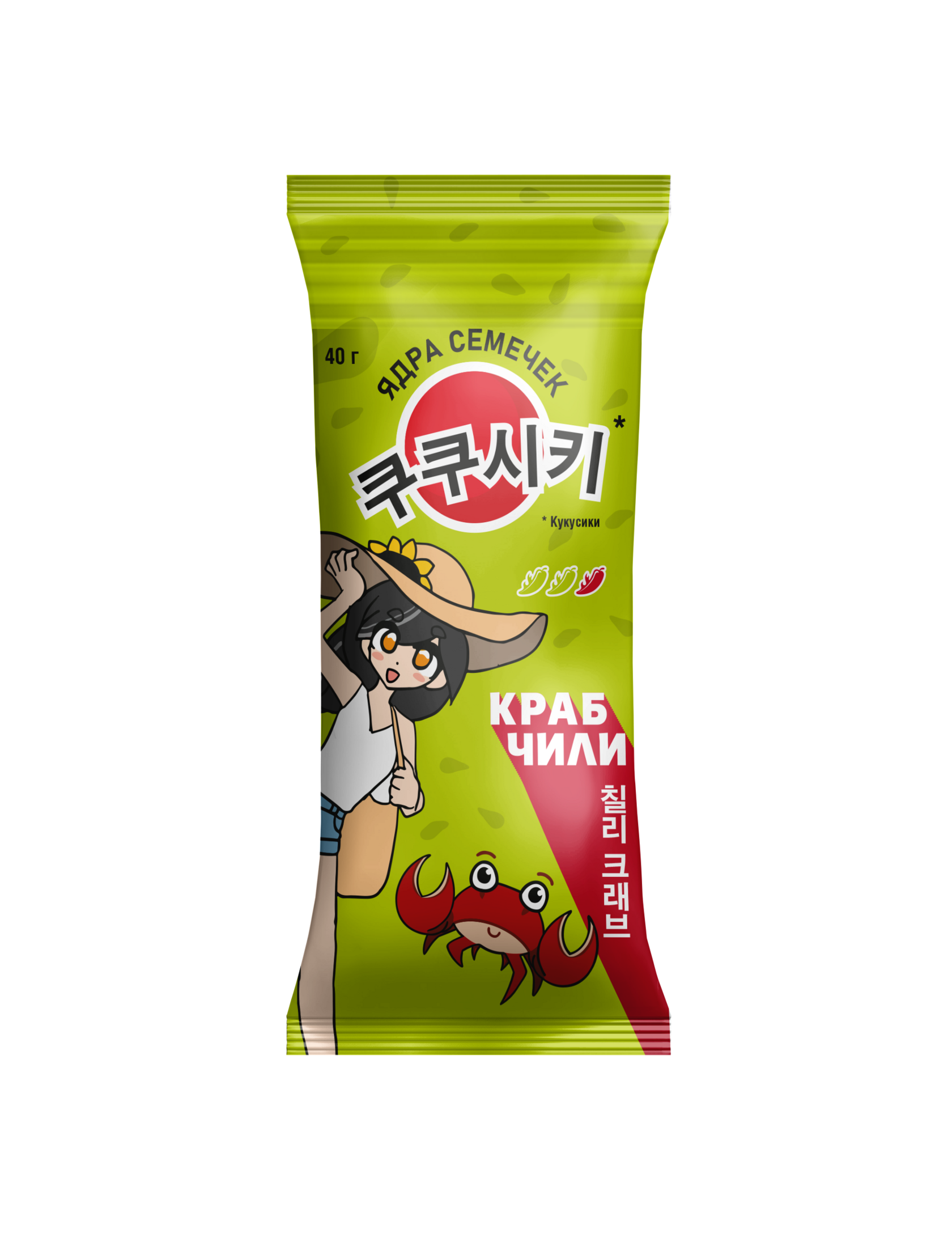 Очищенные ядра семечек подсолнечника со вкусом Краб с чили. Краб чили - это сочетание сладкого крабового мяса и острого перца чили.