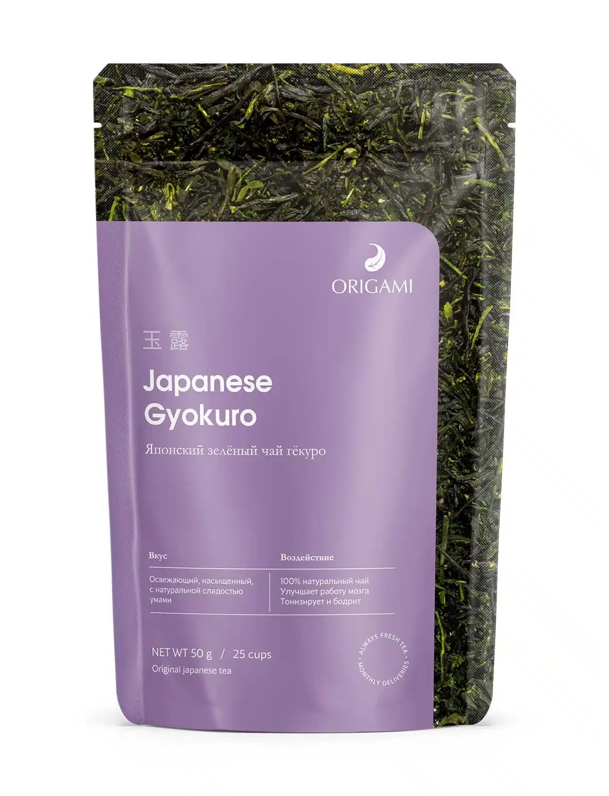 Японский зеленый чай гёкуро изготавливают их самых молодых чайных листьев первого весеннего урожая с применением технологии крытого разведения. В результате получается чай с повышенным содержанием ценной аминокислоты L-теанина