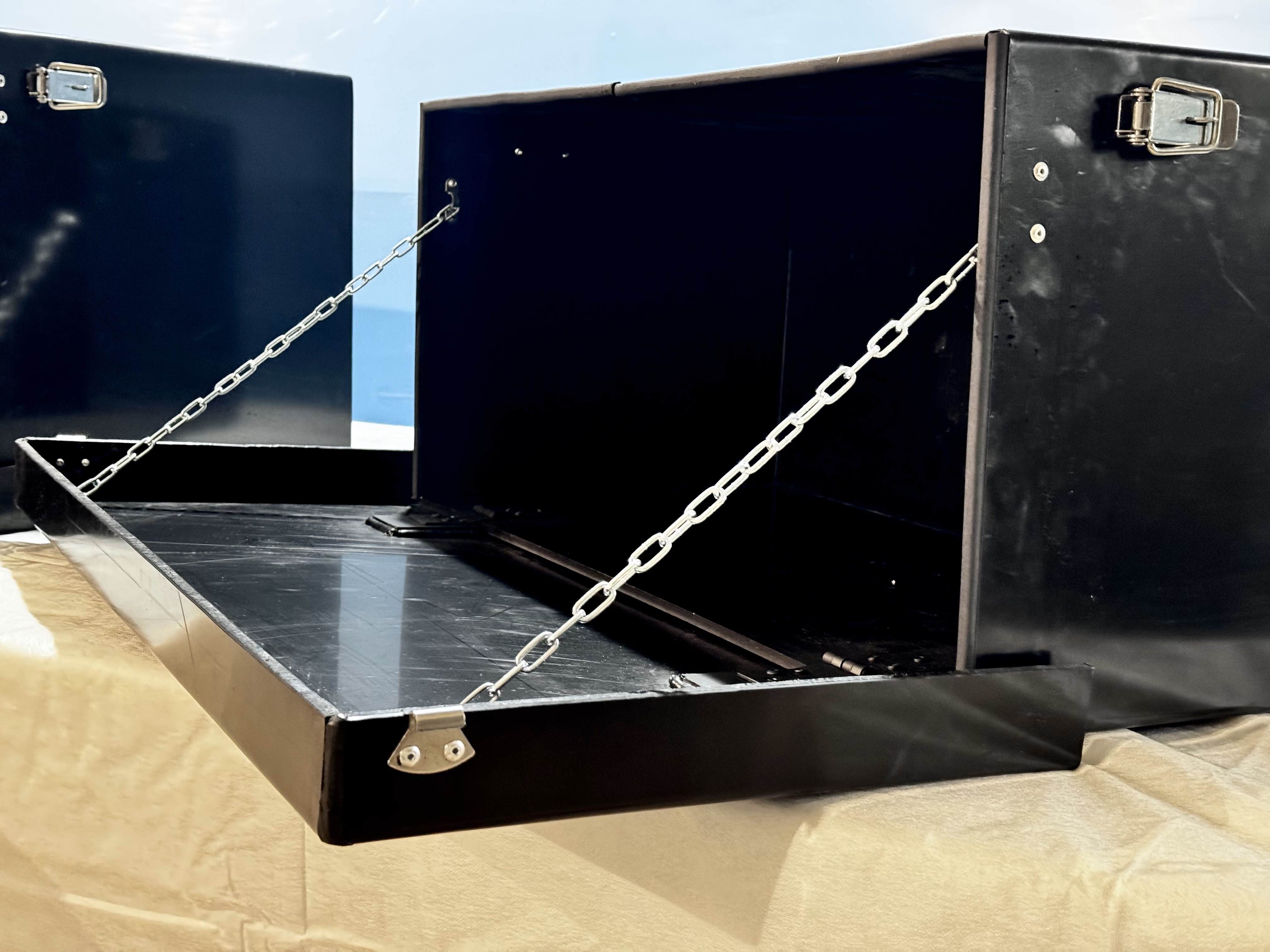 ✅Надежные крепления: Все соединения выполнены с использованием алюминиевых заклепок, а крышка крепится к ящику с помощью стальных петель, что обеспечивает высокую прочность и долгосрочную эксплуатацию.