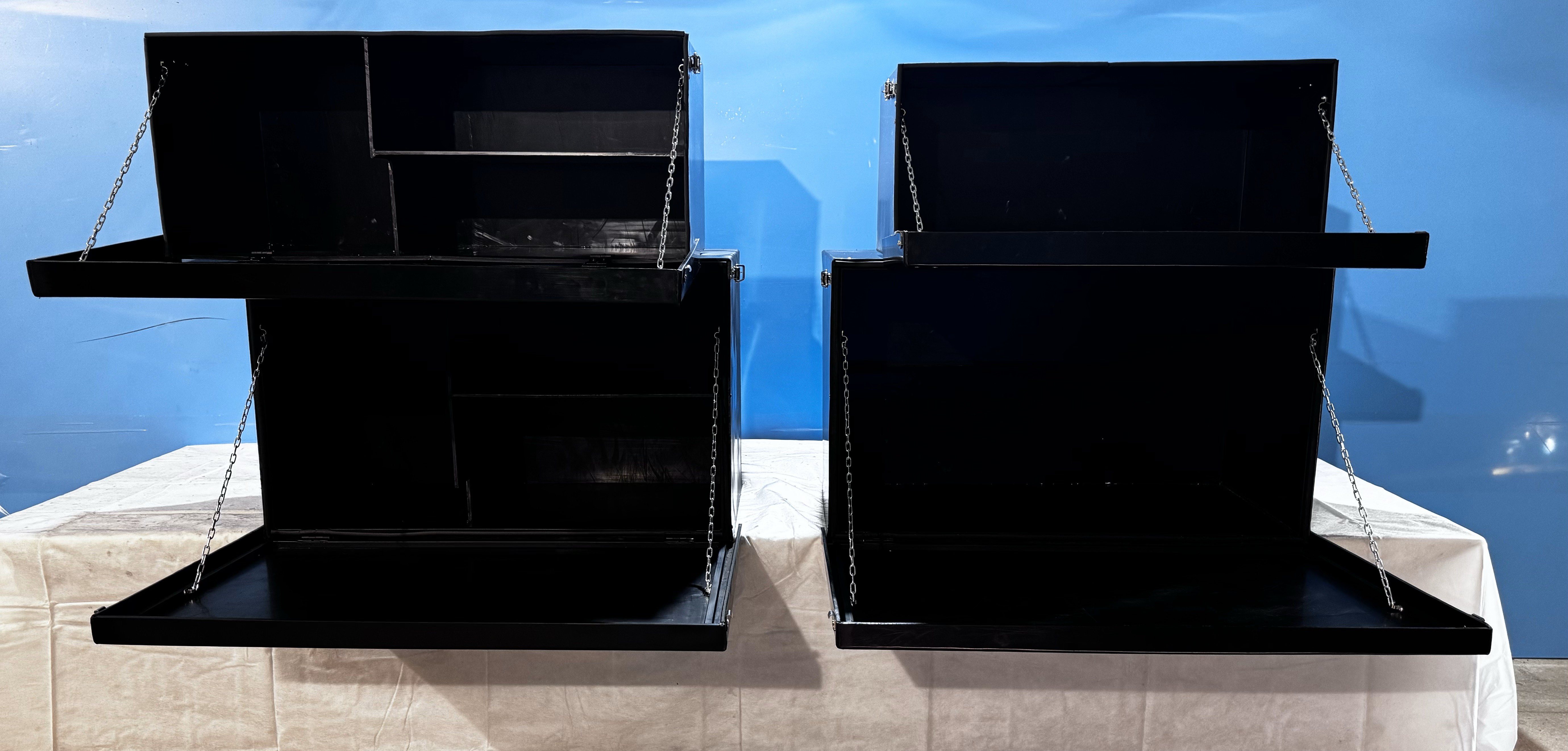 ✅Удобство в использовании: В зависимости от размера, ящики комплектуются полками для удобной раскладки инвентаря. В больших ящиках предусмотрены дополнительные лотки. Ящики закрываются на удобный замок-защелку «лягушка» из стали, что делает их использование более комфортным.