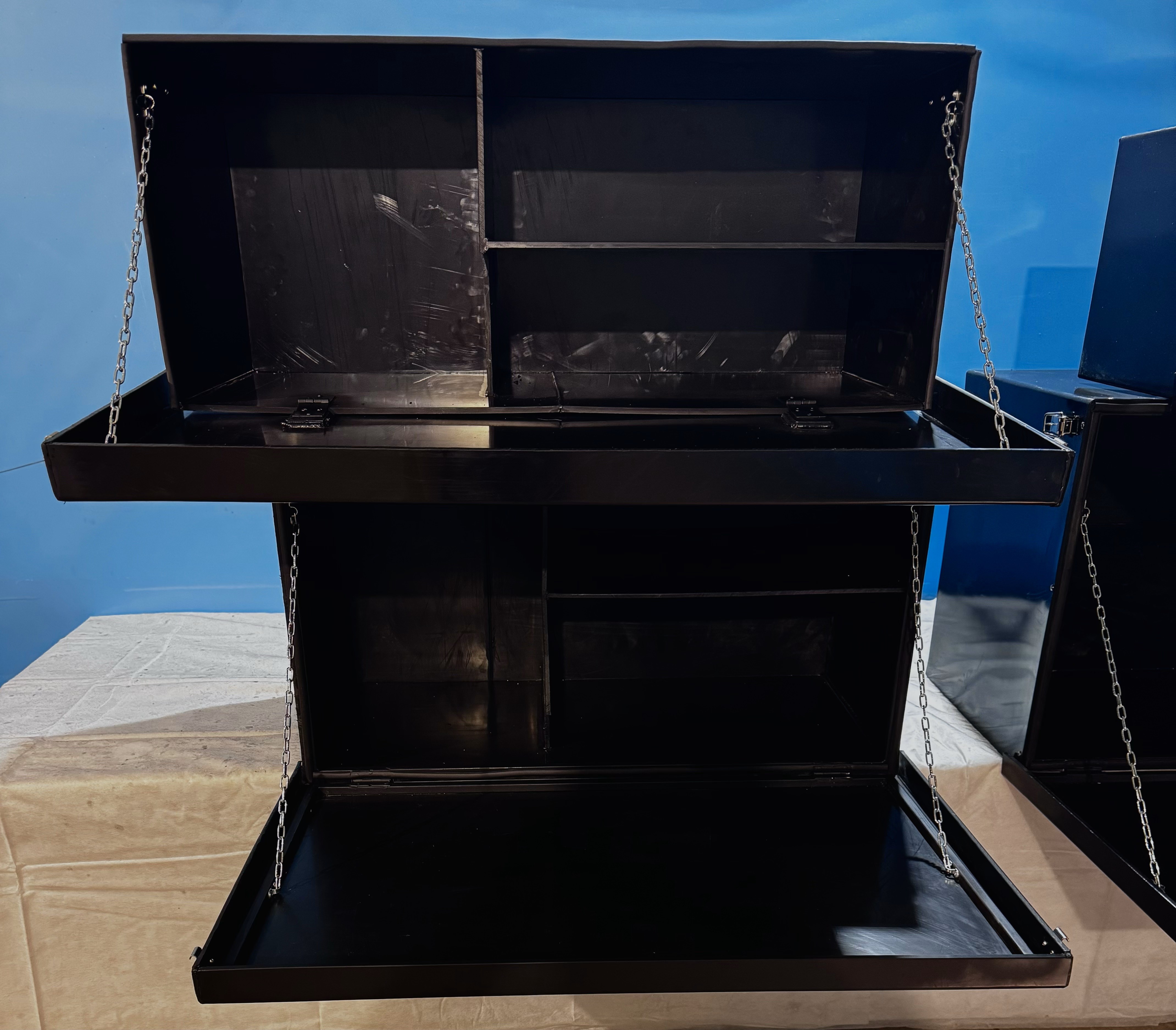 ✅Практичные детали: Ящики оснащены стальными цепочками, которые облегчают использование в качестве рабочего столика. Также используется уплотнительная лента, позволяющая надежно закрывать ящик.