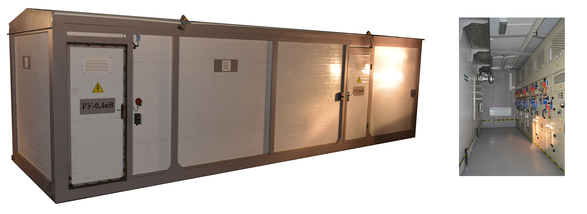 Закрытые распределительные устройства ЗРУ-6(10) в мобильных блок-контейнерных зданиях на напряжение 6, 10 кВ предназначены для приема и распределения электрической энергии трехфазного переменного тока промышленной частоты 50Гц горнодобывающих, нефтегазовых и промышленных объектов. ЗРУ-6(10) кВ состоят из отдельных блок-контейнеров с установленными в них комплектными распределительными устройствами из панелей серии КРУ-2-13, или камер серии КСО . Блок-контейнеры отдельно доставляются автомобильным или железнодорожным транспортом на место монтажа, где производятся их стыковка между собой, электромонтажные и пуско-наладочные работы. ЗРУ-6(10) кВ изготавливается согласно опросному листу составленного для каждого заказчика индивидуально, с детальной проработкой основного, и дополнительного оборудования, учитывая все пожелания заказчика. Степень защиты - IP 23, 54. Номинальное напряжение вспомогательных цепей постоянного и переменного тока - 110,220В. Номинальное напряжение вспомогательных цепей освещения - 36В. Каркас ЗРУ собирается из металлического профиля, при этом основой служит труба и швеллер. Вся конструкция надежно проваривается, после чего изделие отправляется на покраску. Затем исходя из климатических условий эксплуатации ЗРУ каркас обшивается панелями из листового металла толщиной 1,5 — 2 мм., предварительно окрашенными порошковой краской или сэндвич — панелями.