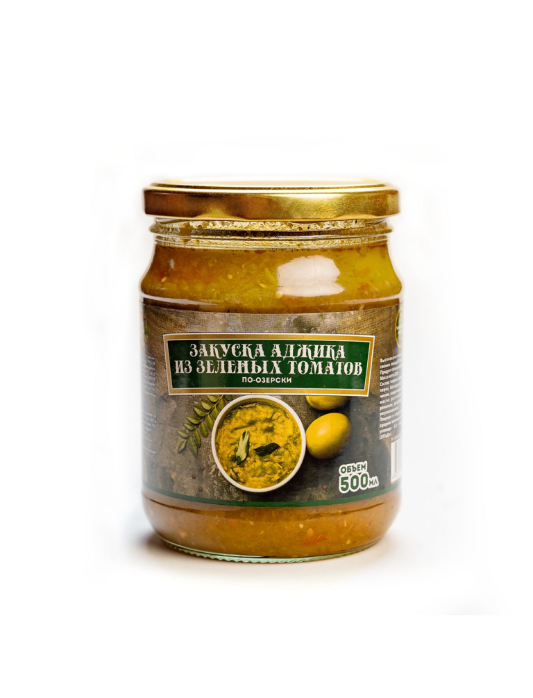 Закуска аджика из зеленых томатов 500 г без ГМО, без ароматизаторов, без консервантов. Вегетарианский, натуральный, постный продукт из свежих овощей.