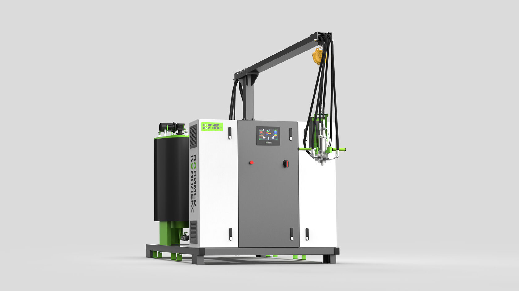 Пневматические насосы для закачивания компонентов из бочек/кубов поставщика в емкости заливочной машины высокого давления Емкости объемом 0,33 м3; 0,63 м3; 1 м3 (в зависимости от мощности машины) с водяными рубашками для контроля температуры компонентов и визуальным уровнемером. Устанавливаются на раме дозирующей машины или рядом (по согласованию с заказчиком) Электрический шкаф с системой управления, оснащенный контроллером Delta Мешалка на емкости компонента А Датчики температуры и регулируемые предохранительные клапаны Аксиальнопоршневые насосы, агрегированные с электродвигателями, возможно использование магнитных муфт Преобразователи частоты, позволяющие изменять производительность каждого насоса и соотношение компонентов Фильтры со сливным краном для удаления фильтрованных частиц Гидростанция с гидроаккумулятором для управления работой гидроцилиндра в смесительной головке и запорными клапанами для переключения малого и большого циркуляционных контуров. Давление устанавливается автоматически в диапазоне 90-180 атм Управление через сенсорный экран с 60 программами. Оптимальное управление уровнем, температурой и давлением с встроенной защитой. Режим “выходного дня” для эффективной циркуляции компонентов. Ввод данных о трубе: диаметр стальной трубы, диаметр и длина оболочки (ОЦ/ПЭ), автоматический расчет расхода материала. Надежное хранение информации и передача данных на USB-накопитель Заливочная одноцилиндровая или двухцилиндровая (L-образная) голова Поворотная стрела длиной 2,2-4 м, угол работы - 270° Пульт дистанционного управления Дополнительное оборудование — Чиллер (устройство для охлаждения/контроля температуры) компонентов — Датчики уровня в резервуарах — Системы для автоматической закачки компонентов — Мешалка на емкость Б — Магнитные муфты для насосов — Подвижная тележка на рельсах. Дозирующая машина высокого давления может быть установлена на тележке и перемещаться по рельсам вдоль форм — Автоматический склад сырья (емкости для хранения А и Б по 4 м3) — Электрический шкаф с системой управления, оснащенный контроллером Siemens