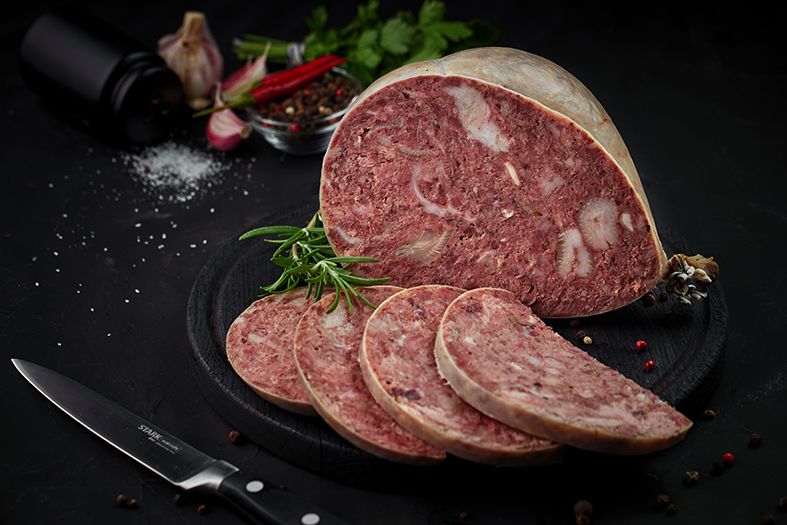 Зельц «Столичный» - нежный зельц, приготовленный из мяса свиных голов и свиного сердца, щедро приправленный пряностями, черным перцем, чесноком и кардамоном, безусловно порадует ценителей деликатесов. Вы полюбите его за нежный мясной вкус и натуральный состав. Советуем попробовать в сочетании с лазаревской горчицей.
