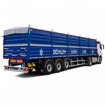 Зерновозы бортовые 46-60 м3 с вынесенной осью предназначены для перевозки зерна и других сыпучих сельскохозяйственных грузов, обеспечивая при этом повышенную устойчивость и маневренность при разгрузке. Вынесенная ось позволяет более равномерно распределить нагрузку на дорогу, снижая давление на ось и улучшая управляемость, особенно при разгрузке. 3+1 оси, снаряженная масса от 7 200 кг.