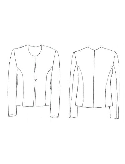 Жакет "Шанель" на подкладке для девочек старшей школьной и подростковой возрастной группы. Изделие полуприлегающего силуэта с втачнам двухшовным рукавом, боковые линии изогнуты, имеют облегание по лини груди и талии. Горловина расширена и незначительно углублена по полочке, горловина спинки естественной формы. Линия плеч естественная по высоте, форме, длине. Линия груди естественная по форме. Линия проймы на естественном уровне, овальной конфигурации. Линия талии на естественном уровне. Линия низа прямая ровная, расположена на 12см ниже линии талии. Застежка по центру груди встык на 1 пуговицу с подвесной петлёй.Формообразование обеспечивается за счет изогнутых боковых линий и рельефов по полочке, исходящих от проймы через центр грудных желез к талии, и спинке, исходящих от проймы через выступающие точки лопаток к талии.