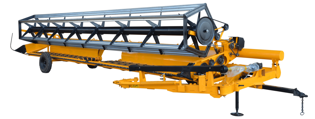 - транспортное устройство - выдвижное дышло и пара колес на оси для перемещения жатки по дорогам общего назначения.