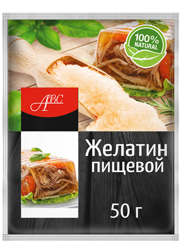 Желатин пищевой 50 гр используется в домашней кулинарии в качестве загустителя. Рекомендуется применять для приготовления заливных из мяса и рыбы, студней, зельцев, мясных и рыбных консервов.