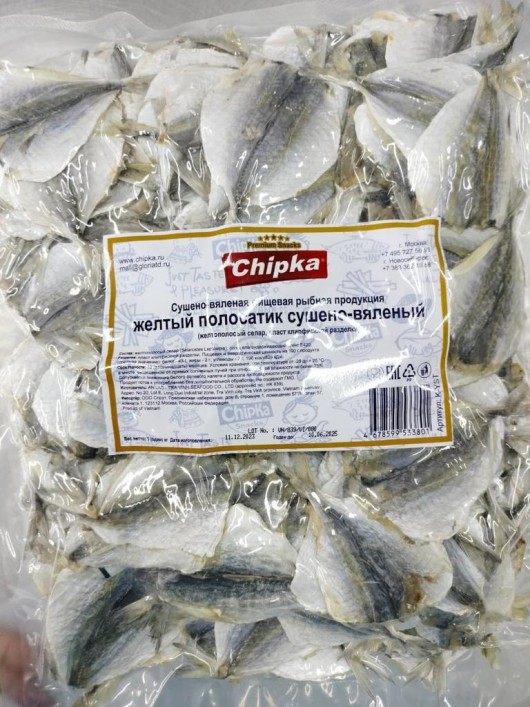 Основным экспортером желтого полосатика является Вьетнам. Сушеная рыбка изготавливается по простой и надежной технологии. Для длительного хранения такой продукции не обязательно использовать холодильник. Желтый полосатик фасуется по 1 кг. Минимальный объем – это 1 коробка весом в 10 кг.