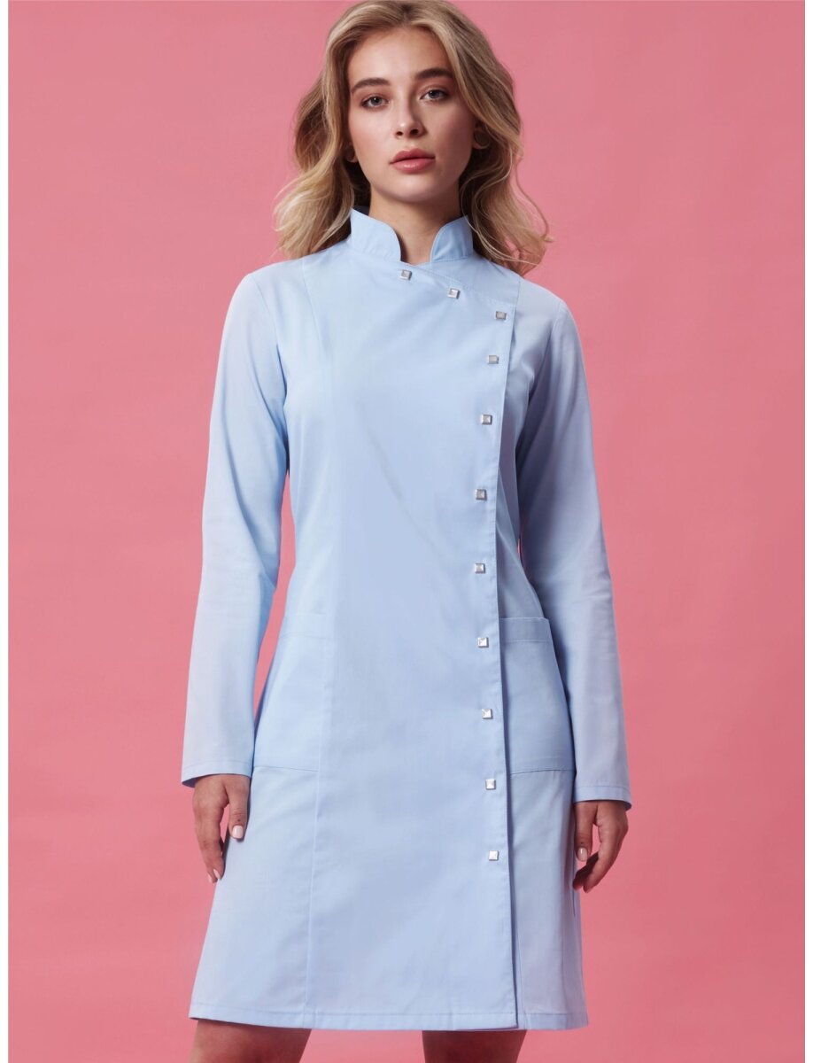 Женский медицинский халат "Алина" на кнопках голубой имеет продуманный силуэт, что позволяет свободно двигаться женщинам-врачам и администраторам, при этом медицинский дресс-код соблюдается, а форма на кнопках сохраняет аккуратный вид даже при активной работе и одобрена практикующими врачами .Укороченный силуэт и удобным рукавом позволяют работать в халате на кнопках без стеснения движений и перегрева.Бортовая застежка на кнопках фиксируется быстро, что особенно важно при приеме пациентов и работе с медицинскими документами.В производстве используем плотные ткани 50% хл / 50% пэ, которые хорошо переносят частую стирку и обработку персональных вещей при интенсивной эксплуатации.Модель хорошо комбинируется с медицинской одеждой: брюки, костюмы, куртки, головные уборы, обувь и аксессуары создают единый профессиональный комплект.Классический цвет легко вписывается в требования медицинских организаций и внутренних стандартов компании.Лаконичный дизайн на кнопках подчеркивает аккуратность формы и облегчает соблюдение дресс-кода клиники.