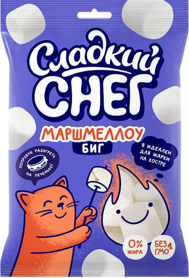 Аутентичная американская рецептура. Большие белоснежные маршмеллоу можно просто есть, а можно жарить. Снаружи они покрываются румяной корочкой, а внутри структура становится кремовой. Не содержит глютен.