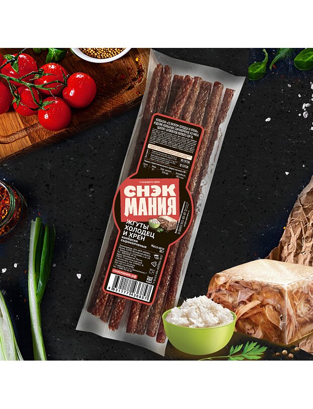 Сырокопченые колбаски, приготовленные из нежного мяса цыплят-бройлеров первого сорта. Имеют чуть грубоватую текстуру, а на срезе вкраплениями свиного шпика. Жгуты обладают ярким копченым вкусом и пряным ароматом.