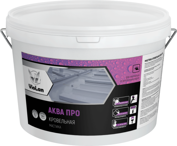 Однокомпонентный состав на основе акрилового латекса, водонепроницаемая, паропроницаемая, ультрафиолетово- и озоностойкая. Жидкая гидроизоляция VioLan «Аква Про» обладает несомненным достоинством перед каучуковыми, полиуретановыми, битумно-полимерными и прочими жидкими гидроизоляциями возможностью крепить керамическую плитку и керамогранит после полной просушки. Применяется как жидкая кровля для реставрации старой кровли без её демонтажа, и создания новой кровли по всем видам оснований. Часто используется как гидроизоляция пола и стен ванны и душевой.