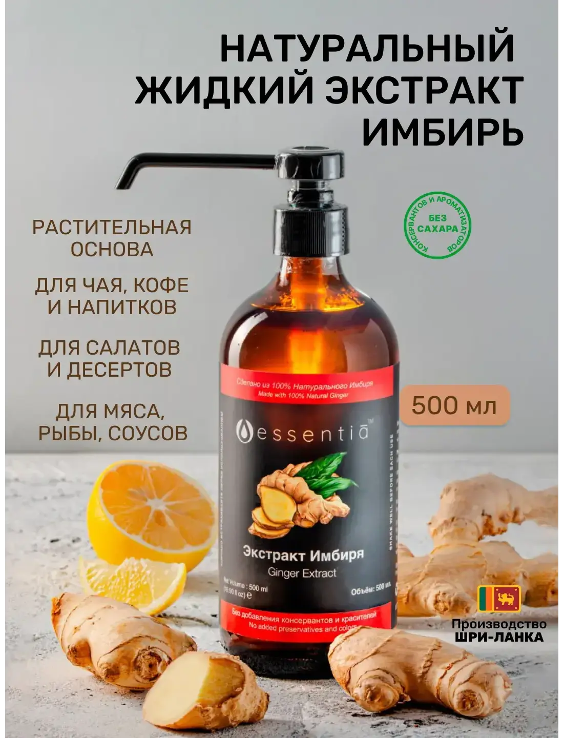 Мы продаем настоящий Цейлонский Имбирь, произведенный и разлитый в стеклянные бутылки с дозатором на фабрике в Шри-Ланка, обеспечивая соблюдение самых высоких стандартов качества.