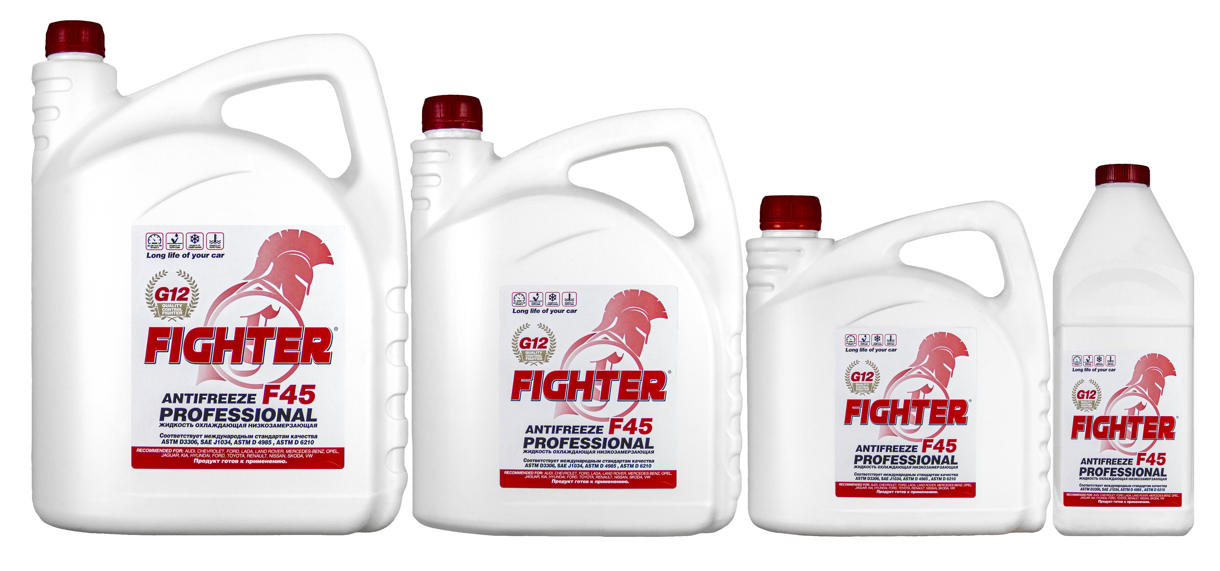 Антифриз FIGHTER PROFESSIONAL G12 предназначен для эксплуатации в системах охлаждения двигателей внутреннего сгорания бензиновых и дизельных двигателей легковых и грузовых автомобилей и других теплообменных аппаратов, эксплуатируемых при температуре до -45С. Новая гибридная формула с оригинальным пакетом ингибиторов коррозии на основе карбоксилатов не содержит нитритов, нитратов, аминов и фосфатов. Антифриз FIGHTER PROFESSIONAL G12 защищает двигатель от коррозии и кавитации. Цвет антифриза – красный.
