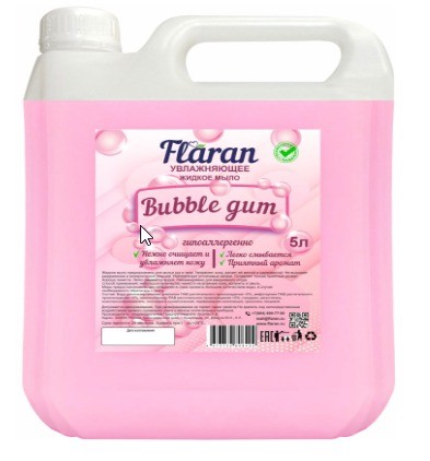 Жидкое мыло увлажняющее "бабл гум" flaran 5л