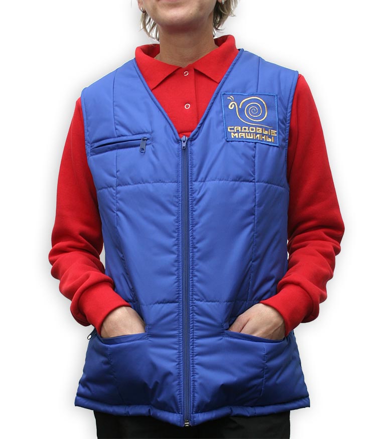 Жилет Крафт разработана с учётом того, что надеваться этот жилет будет поверх рубашки, с этой целью в жилете отсутствует ворот. С таким же успехом жилет можно надеть на футболку, кенгуруху или свитер.Ткань с водонепроницаемой пропиткой, утепление синтепоном, три кармана на молнии (количество карманов можно изменить) позволяют рекомендовать этот жилет в качестве униформы. Вариант жилета для женщин притален по фигуре, а поперечные отстрочки делают его вполне элегантным.
