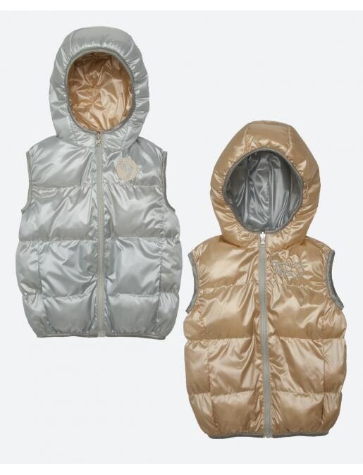 Жилет Твин - это утеплённая безрукавка, которая служит для сохранения тепла без сковывания движений, защищает от ветра и подходит для прохладной погоды (от +15°C до 0°C), обеспечивая комфорт на прогулках, в играх и даже в качестве дополнительного слоя под куртку для активных детей, сохраняя свободу рук и не ограничивая подвижность, в отличие от куртки. Двусторонний жилет на синтепухе - 100% полиэстер. Цвет - серебро и золото. Молния с перекидным замком. Украшен вышивкой. Удобный капюшон. Края обработаны резинкой. Ростовка - 98 см., 104см., 110см., 116см. Для мальчиков и девочек. На осень и весну.