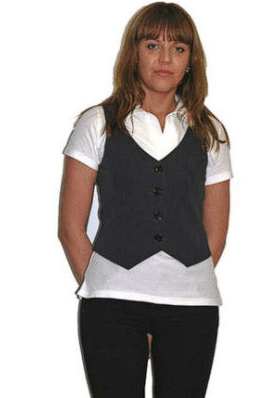 Жилетка с V-образной горловиной, застежка центральная на петли и пуговицы, Сзади декоративный хлястик на уровне тали.Эта модель может быть произведена из любого нужного Вам материала. Окончательная цена зависит от:— используемого материала;— количества моделей в заказе;— размера и способа нанесения изображений.
