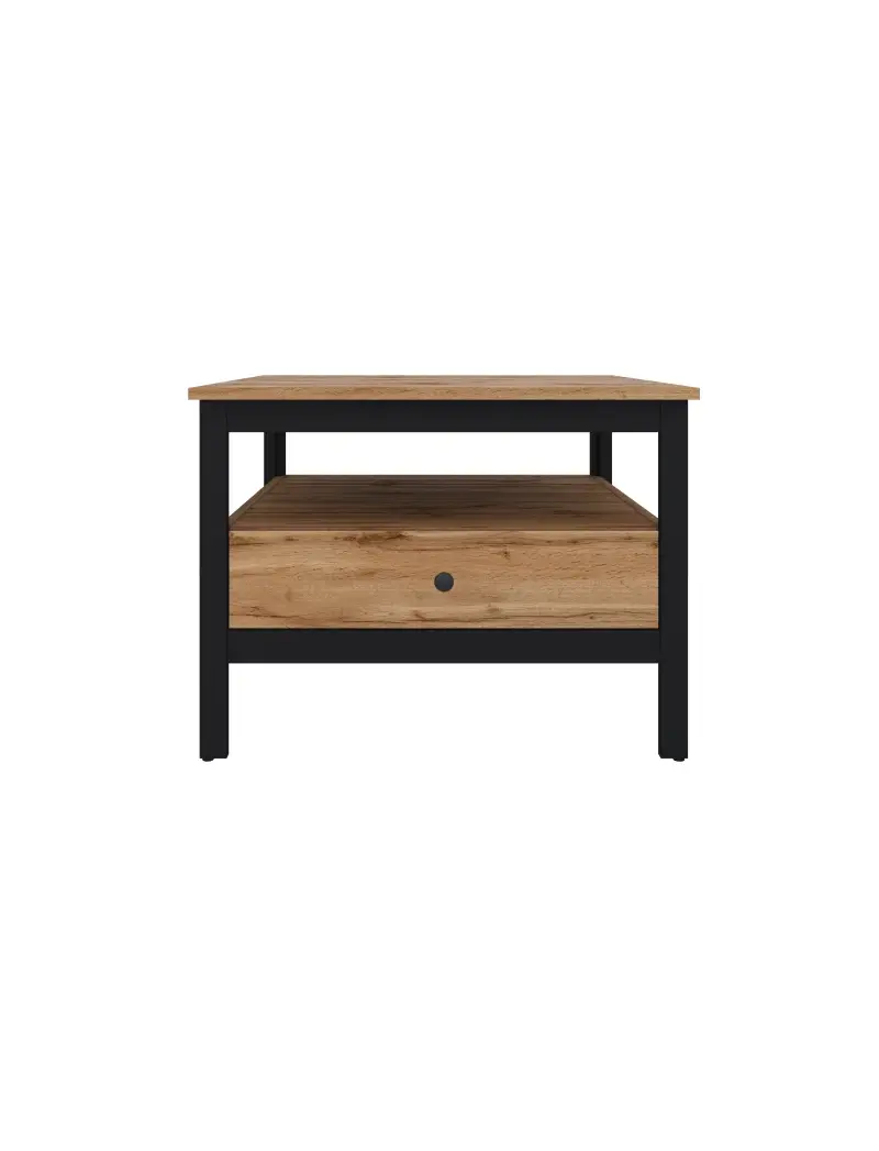Журнальный стол с выдвижным ящиком Loft - это компактное решение для гостиной в стиле лофт. Продуманный дизайн столика позволяет удобно хранить журналы, книги и другие мелочи, оставляя поверхность стола свободной для декора или напитков. Выдвижной ящик обеспечивает дополнительное пространство для хранения, скрывая предметы от посторонних глаз. Модель также отлично подходит в качестве чайного или кофейного столика. На его просторной столешнице можно удобно разместить сервиз, сладости и закуски для уютного чаепития в кругу семьи или друзей. Размеры: ширина - 70 см., длина - 70 см., высота - 52 см. Цвет корпуса - дуб вотан/черный матовый.