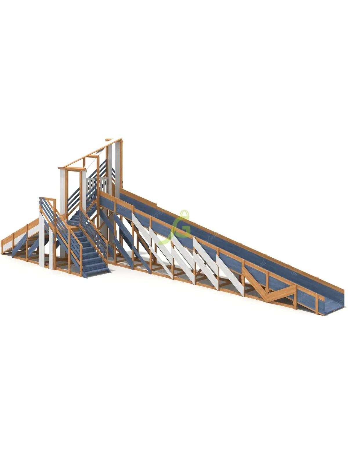 Зимняя деревянная горка "IgraGrad Snow Fox 12 м" - это модульная конструкция для зимнего досуга, сделанная из качественного дерева с двумя скатами, предназначенная для катания на тюбингах и санках во дворах, парках, на дачах, с бортиками и лестницей для безопасности, способствующая активному отдыху, общению детей и укреплению здоровья. Она устанавливается на ровной поверхности, а для заливки ската используется вода, чтобы создать ледяное покрытие, как у настоящих горок. Данная горка опционально может иметь еще одну особенность - подсветку. Это делает ее еще более яркой и привлекательной, особенно в темное время суток. Подсветка создает атмосферу волшебства и позволяет наслаждаться зимними развлечениями даже в темное время дня. Общая высота площадки - 5,7м. Общая ширина площадки - 3,98 м. Общая длина площадки - 16,37 м. Высота первого ската - 2,7 м. Высота второго ската - 1,7 м. Длина первого ската - 12 м. Длина второго ската - 4,0 м. Ширина ската - 1,28 м.