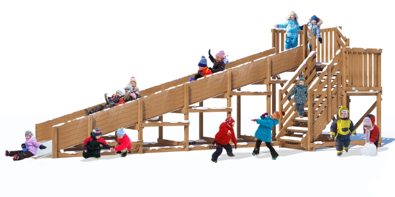 Зимняя горка SWAN-2 для тюбинга - это стационарная деревянная конструкция для катания на тюбингах, ледянках и санках, предназначенная для установки на дачах, в коттеджных поселках, школах и детских садах, предлагающая длинный (более 7 метров) и безопасный спуск для зимних развлечений, тренировки вестибулярного аппарата и баланса детей и взрослых, с возможностью заливки водой для лучшего скольжения. Угол наклона горки - 16,5 градусов. Ширина спуска более метра позволяет безопасно съезжать как на маленьких ледянках, так и на больших, даже двухместных тюбингах. Конструкция лестницы с плавным подъёмом и промежуточной платформой даст возможность самостоятельно забираться на горку даже малышам.