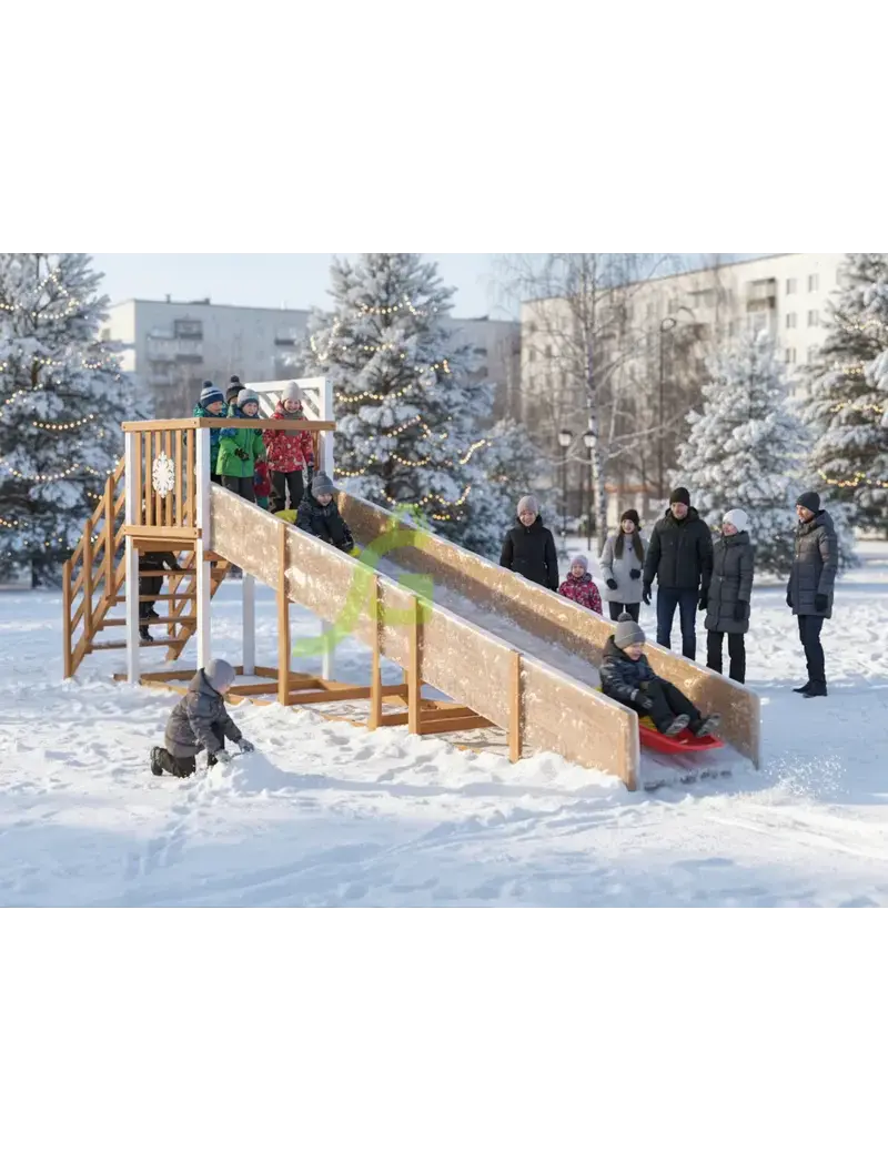Зимняя горка"IgraGrad Snow Fox" - это мир веселых зимних приключений. Изготовленная из дерева хвойных пород, она станет не просто украшением двора или игровой площадки, но и любимым местом для игр детей. Прочная и надежная конструкция, тщательно отшлифованные поверхности и безопасные высокие бортики гарантируют беззаботное и безопасное катание. Классический дизайн горки, сочетающий теплоту натурального дерева с элегантностью белых элементов, гармонично впишется в любой ландшафт. Удобная лесенка с широкими ступенями и прочными перилами обеспечит легкий и безопасный подъем даже для самых маленьких. Небольшая площадка на верху горки, огороженная надежными перилами с очаровательной снежинкой, позволит ребенку на мгновение задержаться и насладиться высотой, прежде чем отправиться в увлекательное скольжение вниз по гладкому скату. Плавный и безопасный спуск подарит массу восторга и положительных эмоций. Высота - 3м. Ширина - 1,58 м. Длина - 7,75 м. Длина ската - 5 метров.