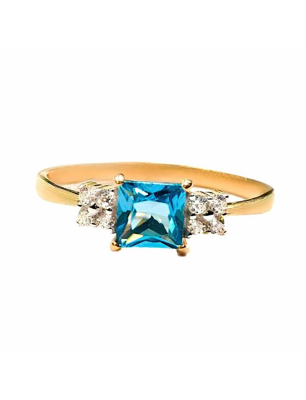 Золотое кольцо с топазом и фианитом - это изысканное ювелирное украшение, сочетающее благородный металл 585 пробы с натуральным голубым топазом и сверкающими искусственными фианитами. Оно используется как повседневный элегантный аксессуар, подарок к торжеству, кольцо для помолвки или как талисман, приносящий оптимизм. Топаз требует бережного отношения, его нельзя чистить ультразвуком,а только в теплом мыльном растворе.